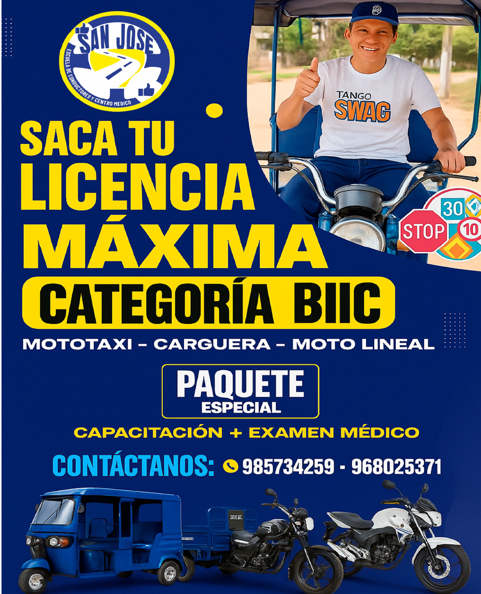 Contamos con full practicas en Circuito alterno al MTC. Asimismo podrás rendir tu Examen medico para brevete, ya que contamos con Centro médico propio.